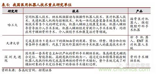 隨著醫(yī)用機(jī)器人技術(shù)的不斷突破和發(fā)展,從2005年開(kāi)始我國(guó)有一批重點(diǎn)高??蒲嗅t(yī)院?jiǎn)挝患把芯克谘芯酷t(yī)用機(jī)器人系統(tǒng)并取得了一些小成就,比如哈工大的微創(chuàng)腹腔外科手術(shù)機(jī)器已經(jīng)成功被專(zhuān)家驗(yàn)收,天津大學(xué)的妙手機(jī)器人在今年3月份開(kāi)始臨床使用;同時(shí),隨著醫(yī)用機(jī)器人商業(yè)化市場(chǎng)化的可能性愈發(fā)明晰,已經(jīng)有部分企業(yè)正在生產(chǎn)或者打算進(jìn)軍醫(yī)用機(jī)器人細(xì)分行業(yè),其中就包括機(jī)器人領(lǐng)先企業(yè)的博實(shí)股份和新松機(jī)器人。