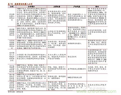 根據(jù)中國(guó)品牌網(wǎng)統(tǒng)計(jì)公布的2013年十大掃地機(jī)器人品牌排行榜,我國(guó)國(guó)產(chǎn)掃地機(jī)器人有6家上榜。目前為止,我國(guó)已經(jīng)有一部分表現(xiàn)優(yōu)良的企業(yè)涉足家用清潔機(jī)器人的開(kāi)發(fā)和生產(chǎn),都和國(guó)內(nèi)高校研發(fā)機(jī)構(gòu)有所合作,做到研產(chǎn)結(jié)合。當(dāng)前機(jī)器人行業(yè)發(fā)展的宏觀前景良好,市場(chǎng)潛力巨大,目前我國(guó)會(huì)在未來(lái)出現(xiàn)一批在細(xì)分行業(yè)技術(shù)領(lǐng)先表現(xiàn)良好的潛力企業(yè)。