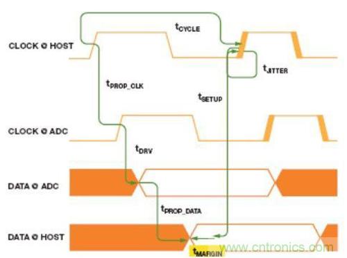tPROP_CLK: 從主機到ADC的傳輸線路的數(shù)據(jù)傳播延遲