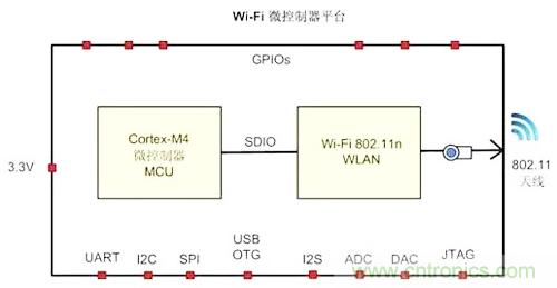 微控制器是家居智能化的關(guān)鍵部件。MCU和Wi-Fi是最基本的兩個(gè)元素。以某一Wi-Fi微控制器為例,它是內(nèi)置全功能微控制器的單芯片SoC,支持802.11n Wi-Fi。