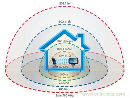 至于Wi-Fi,它的所有頻率都屬于微波類別,從30000MHz到300GHz之間,波長分別為1米到1毫米。2.4GHz的老式Wi-Fi標準(a/b/g)的波長足夠低,具有良好的穿透能力,可以很快地通過人、門和墻壁。對于802.11n/ac的5GHz頻率,其可用范圍會減小,這也是為什么許多路由器支持2.4GHz和5GHz網絡(以及向后兼容性)的原因,但5GHz頻段在很大程度上只可用于小型家庭。