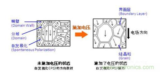 圖2:向鐵電體陶瓷施加電壓時的狀態(tài)