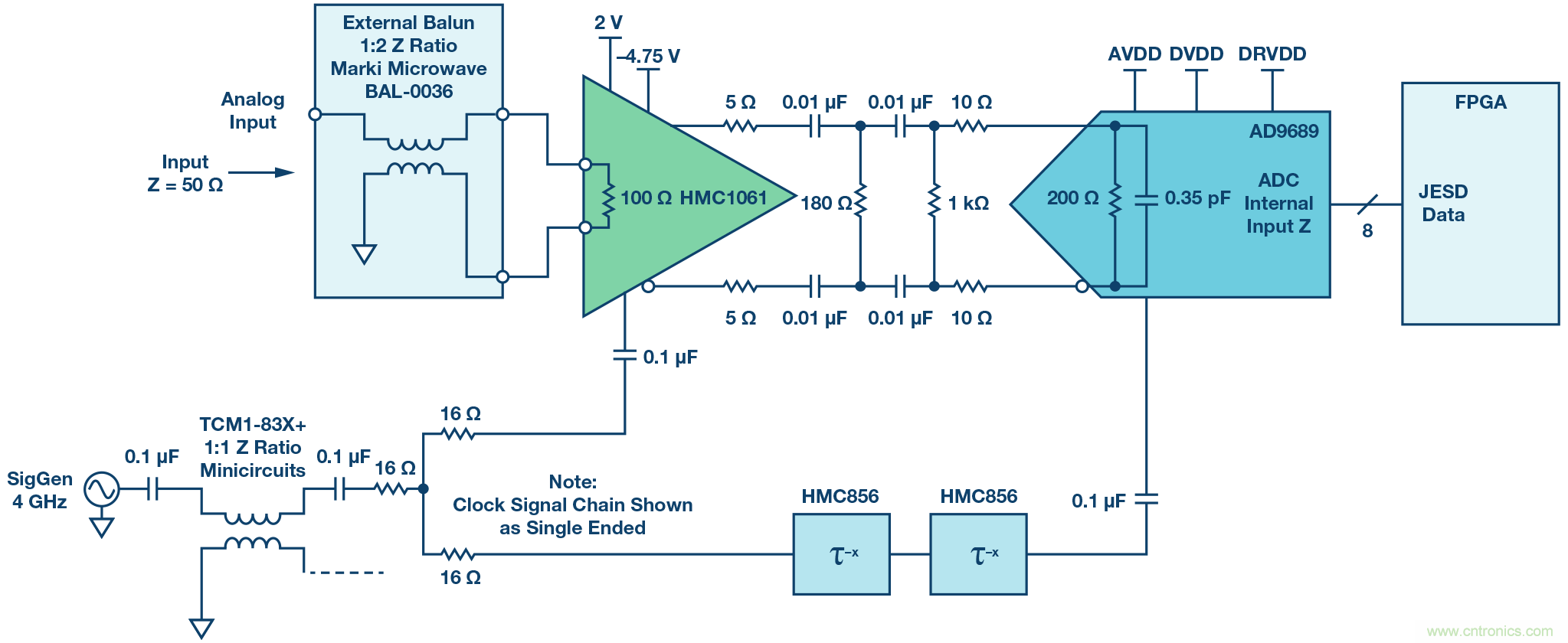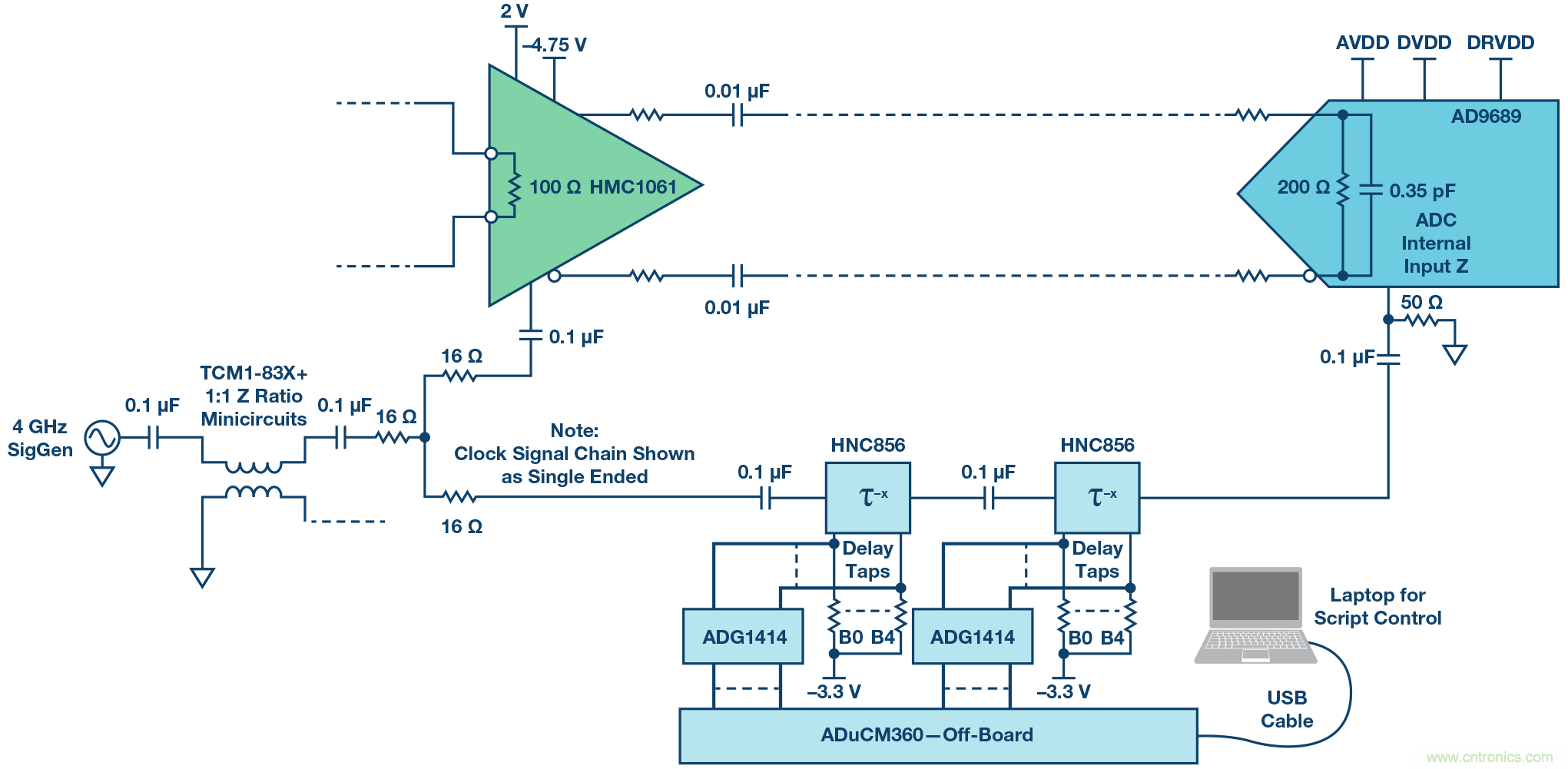圖5. THA和ADC前端網(wǎng)絡(luò)及信號鏈。