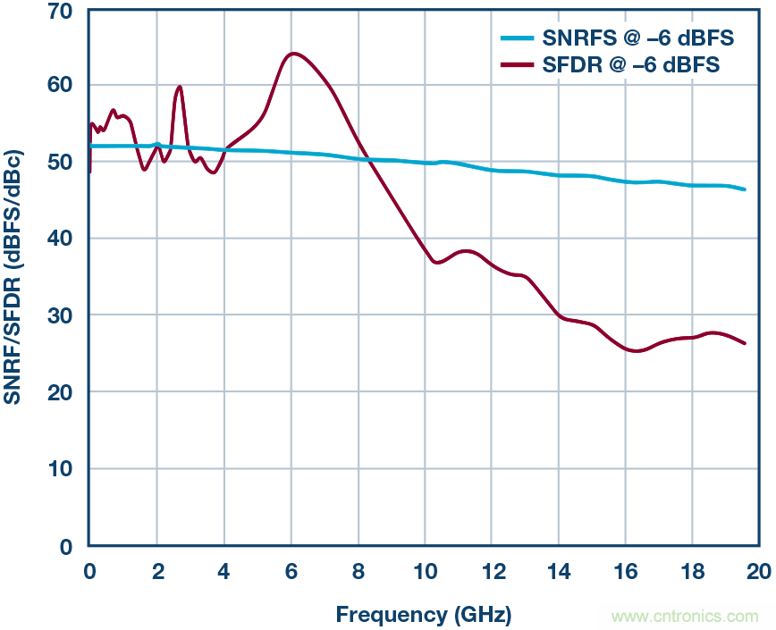 圖6. –6 dBFS時的SNRFS/SFDR性能結(jié)果。