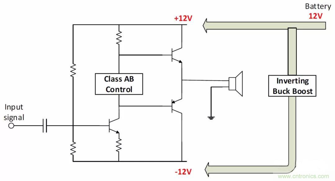 圖12B. 輸入電源為12V電池時,用反相降壓-升壓拓撲生成負壓軌