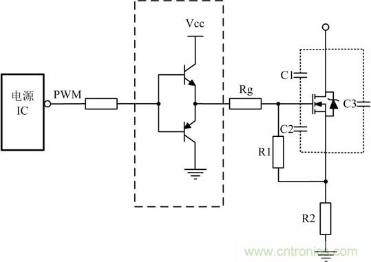 開關(guān)管開通瞬時(shí),驅(qū)動(dòng)電路應(yīng)能提供足夠大的充電電流使MOSFET柵源極間電壓迅速上升到所需值,保證開關(guān)管能快速開通且不存在上升沿的高頻振蕩。