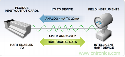 HART 標(biāo)準(zhǔn)的引入提供了一種創(chuàng)建“智能”發(fā)射器的方式,方法是添加數(shù)字通信功能,共享用于傳統(tǒng) 4 mA 至 20 mA 儀器的同一根雙絞線。4 mA 至 20 mA 模擬電路由 1 mA 峰峰值 FSK 信號(hào)進(jìn)行調(diào)制—而不中斷原始主變量傳輸—同時(shí)仍然為環(huán)路工作留下裕量。HART 協(xié)議已經(jīng)成為在智能設(shè)備和控制或監(jiān)控系統(tǒng)之間通過(guò)模擬線路發(fā)送和接收數(shù)字信號(hào)的全球標(biāo)準(zhǔn)。