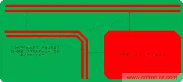 6.為了減少串擾,在空間允許的情況下,其他信號網(wǎng)絡及地離差分線的間距至少20mil(20mil是經(jīng)驗值),覆地與差分線的距離過近將對差分線的阻抗產(chǎn)生影響;