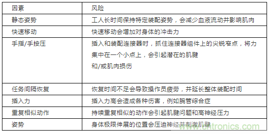 表 1:連接器裝配的相關(guān)風(fēng)險因素示例