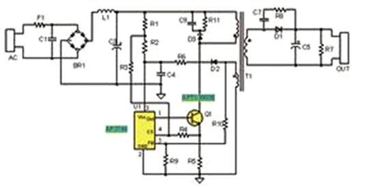 2. AP3766采用專有的“亞微安啟動(dòng)電流”技術(shù),僅需0.6μA的啟動(dòng)電流,因此降低了啟動(dòng)電阻R1和R2上的功耗,提高了系統(tǒng)效率。典型5W應(yīng)用效率大于80%,空載功耗小于30mW。