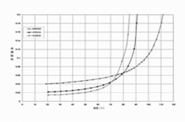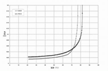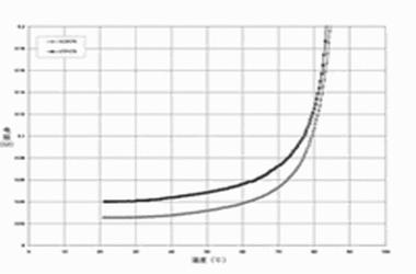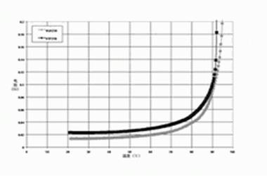 圖2 針對(duì) PolySwitch SRP,VTP及VLR聚合物的PTC材料使用的無源阻抗 vs, 溫度曲線