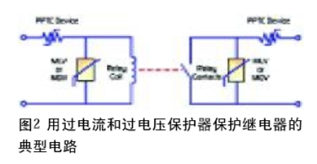 圖2是保護繼電器的一種典型電路。PPTC保護器是是與繼電器繞組串聯(lián)著,在出現(xiàn)故障或者發(fā)生意外的過載時,它限制繼電器中流過的電流。這個圖中,還有一個 PPTC保護器與繼電器的觸點串聯(lián)著,它起的作用與保護繼電器繞組是一樣的。在選擇PPTC保護器時,很重要一點是它的額定電壓要等于或高于預期的最高電壓。還要求保護器的保持電流必須等于或大于正常運作時的最大穩(wěn)定狀態(tài)電流。此外,還要考慮到最高環(huán)境溫度,這是因為隨著環(huán)境溫度上升,保持電流下降。