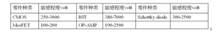 表1 幾種不同類型器件的靜電敏感程度