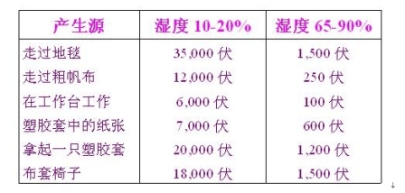 另一方面,濕度亦是一個(gè)重要的考量因素。適宜的濕度可降低ESD發(fā)生的機(jī)率。(見(jiàn)表2)這也是電子制造廠為何多在南方建廠的原因之一。