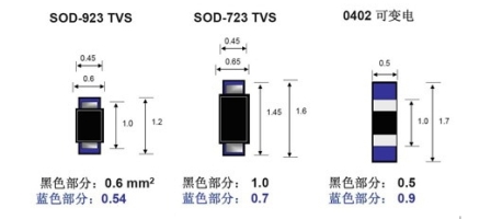 圖7 TVS元件與0402封裝可變電阻尺寸比較,藍(lán)色為建議焊接面積 (資料來(lái)源:安森美半導(dǎo)體)