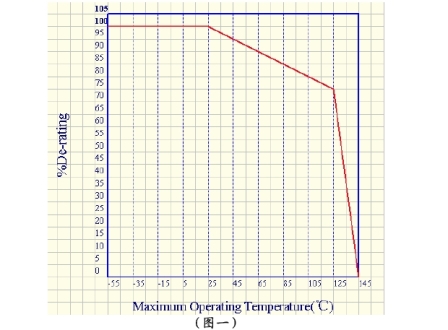 AEM熔斷器溫度折減曲線如圖一所示: