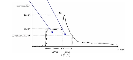例1:下圖為一個(gè)用戶所提供的浪涌電流曲線:
