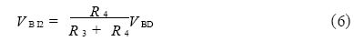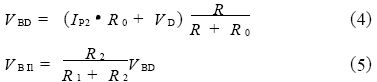 設(shè)二極管正向壓降為VD , 分壓電阻R1、R 2、R 3、R 4 對(duì)R0的影響可以用等效電阻R= (R 1 + R 2 ) ∥ (R 3 +R 4) 來表示, 則在正常工作時(shí), 滿足