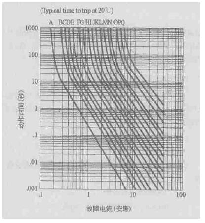圖1 RXE系列元件20℃時的動作保護(hù)特性曲線