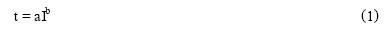 由于PolySwitch元件具有PTC效應(yīng),其動作保護(hù)特性曲線部分的數(shù)學(xué)模型可參考PTC器件的阻溫特性來建立。該類特性的數(shù)學(xué)模型可采用冪函數(shù)或?qū)?shù)函數(shù)的形式。設(shè)其數(shù)學(xué)公式具有如下形式;