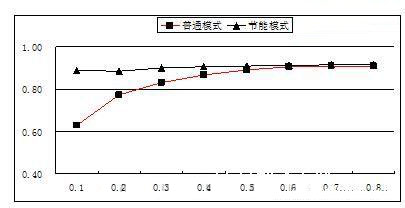 針對電源部分的損耗,戶外電源的工作模式和室內(nèi)電源是一樣的,正常情況下為均流工作模式。市電正常時(shí)模塊負(fù)載率較低,電源系統(tǒng)大多數(shù)沒有工作在系統(tǒng)最佳效率區(qū)間,因此可以采用電源模塊休眠技術(shù)根據(jù)系統(tǒng)負(fù)載狀態(tài),動態(tài)調(diào)整工作模塊數(shù)量,使系統(tǒng)始終工作在最佳效率區(qū)間,從而降低系統(tǒng)的能耗。圖1表示了電源系統(tǒng)在普通工作模式下和節(jié)能模式下的系統(tǒng)典型效率比較。從圖1可看出,采用休眠節(jié)能模式,電源系統(tǒng)的效率在整個(gè)負(fù)載范圍內(nèi)基本保持不變,有效的降低了電源系統(tǒng)在低負(fù)載條件下的能耗。另一方面,對于戶外電源來說,電源系統(tǒng)效率提高會降低設(shè)備倉的發(fā)熱量,降低設(shè)備倉的溫度。