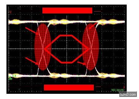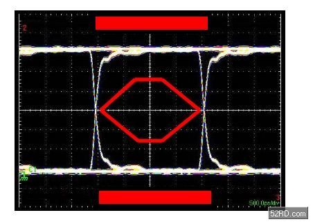 通過在示波器的垂直軸對數(shù)字信號進(jìn)行反復(fù)采樣、同時采用相應(yīng)數(shù)據(jù)率對水平時間掃描進(jìn)行觸發(fā)來生成眼圖。所獲得的圖形看上去象眼睛,如圖1所示。“眼睛”越大,數(shù)據(jù)完整性越高。通常采用模板(mask)來對可接受的信號質(zhì)量進(jìn)行定義。這模板由“眼睛”中間的六角形和“眼睛”上、下的矩陣組成。如果測得的信號跡線穿越模板的邊線,那么信號質(zhì)量就不可接受。USB2.0信號模板規(guī)范由USB應(yīng)用者論壇(USBIF,www.usb.org)提供,可參見USB2.0版規(guī)范第7.1.2.2章節(jié)。圖1中顯示了帶有詳細(xì)臨界點(diǎn)的眼圖。