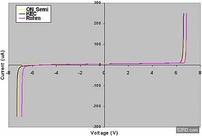 當對以上器件的DC性能進行比較的時候,結(jié)果看起來似乎是相同的(參見圖2所示曲線)。此外,它們都聲稱符合IEC61000-4-2第4級標準,這就意味著它們將都經(jīng)受住高達8kV接觸電壓的ESD沖擊。