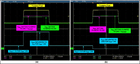 圖3. 圖1電路中,D1分別與Z1 (a)、Z2 (b)串聯(lián)時(shí),電路的工作波形。