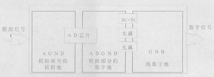 每個器件(包括其周圍電容)的接地端分別用很粗的導線連接到AD或者是DA 的模擬地上,所有的地都在AD或者DA的下面與數(shù)字地一點連接。