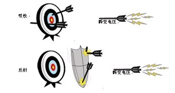 簡(jiǎn)而言之,SPD 會(huì)阻止具有破壞性的瞬變電壓浪涌電平到達(dá)所保護(hù)的設(shè)備。SPD 通過(guò)吸收過(guò)剩的電壓、將其分流或者組合使用這兩種手段,達(dá)到削弱浪涌電壓的目的。圖 1顯示了飛向靶子的箭。靶子代表 SPD,而箭代表瞬變電壓尖峰脈沖。當(dāng)箭擊中靶子時(shí),它會(huì)被吸收并滯留在靶子中。然而,靶子的厚度將決定箭是否可以在沒(méi)有穿到另一側(cè)時(shí)停止。同樣,在這種模式下,箭將不停地?fù)p壞靶子,將來(lái)靶子可能無(wú)法很好地阻止箭。現(xiàn)在,假設(shè)在靶子前面有一個(gè)金屬盾牌。箭發(fā)出后,它會(huì)擊中盾牌,無(wú)任何損害地彈飛到靶子的旁邊。這就是大多數(shù) SPD 的基本工作原理。SPD 吸收能量(并且根據(jù)它們的質(zhì)地好壞,可以防止浪涌,但仍然會(huì)受到損壞),或者將電壓分流到設(shè)備接地線中。在大多數(shù)情況下,SPD 會(huì)將吸收和分流瞬變電壓浪涌的設(shè)備組合使用。