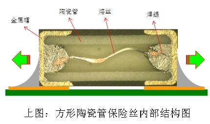 在市場上常見的2410尺寸125Vac或250Vac額定電壓貼片保險(xiǎn)絲, 多是應(yīng)用傳統(tǒng)方形陶瓷管技術(shù)。這一類型貼片保險(xiǎn)絲的兩端是采用金屬帽直接套在方型陶瓷管上, 再以焊錫將金屬帽與內(nèi)部熔絲焊接在一起。一旦產(chǎn)品在高溫的SMT產(chǎn)線上作業(yè),連結(jié)兩端金屬帽與內(nèi)部熔絲的焊錫極有可能會(huì)因高溫而再次發(fā)生熔融情形, 進(jìn)而導(dǎo)致金屬帽脫落的風(fēng)險(xiǎn)。