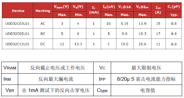 • VRWM :截止電壓必須≥被保護(hù)的電路的最大工作電壓