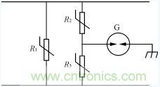 圖4是氣體放電管和壓敏電阻組合構(gòu)成的浪涌抑制電路。由于壓敏電阻有一致命缺點:具有不穩(wěn)定的漏電流,性能較差的壓敏電阻使用一段時間后,因漏電流變大可 能會發(fā)熱自爆。為解決這一問題在壓敏電阻之間串入氣體放電管。但這又帶來了缺點就是反應(yīng)時間為各器件的反應(yīng)時間之和。例如壓敏電阻的反應(yīng)時間為25ns, 氣體放電管的反應(yīng)時間為100ns,則圖4的R2,G,R3的反應(yīng)時間為150ns,為改善反應(yīng)時間加入R1壓敏電阻,這樣可使反應(yīng)時間為25ns。