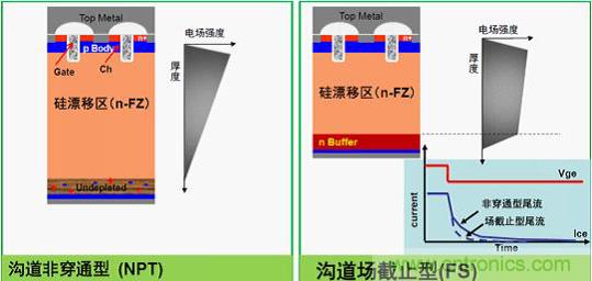 圖1:溝道非穿通型和溝道場截止型IGBT對比
