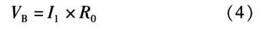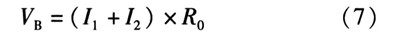 B點(diǎn)的電壓為電阻上的電壓,可由歐姆定理計(jì)算得到。計(jì)算溫度上升翻轉(zhuǎn)點(diǎn)TH,當(dāng)溫度上升時(shí),由前分析可知,TSD為高電平,M2截止。因此流入R0的電流只有I1一路。此狀態(tài)下VB電壓的表達(dá)式為