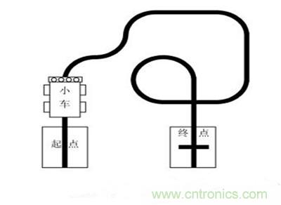 所謂小車循跡,就是在白紙上畫出黑色的線條,稱為賽道;小車沿著賽道按要求(可以做一些指定的任務(wù))行進(jìn)時(shí),能自動(dòng)識(shí)別賽道并按賽道線條行走,稱為小車循跡。如圖1所示,該賽道是2010年全國職業(yè)院校大學(xué)生職業(yè)技能競賽月球車競賽項(xiàng)目湖南賽區(qū)賽道圖。