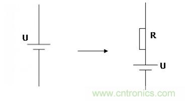 實際電路中,電源存在內(nèi)阻,相當(dāng)于串聯(lián)一個電阻,此時輸出電壓就會有所下降,對電路中的干擾不可忽略。