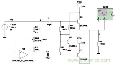 整個電路設計的挺巧妙的。我仿真了一下效果也蠻不錯的。這里簡單的對這個電路分析一下。