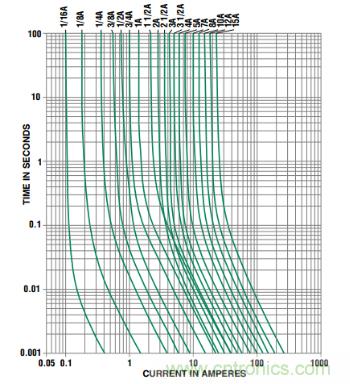 圖1 保險絲電流時間特性