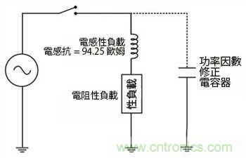 圖1.將并聯(lián)電容器加在電感性負載上