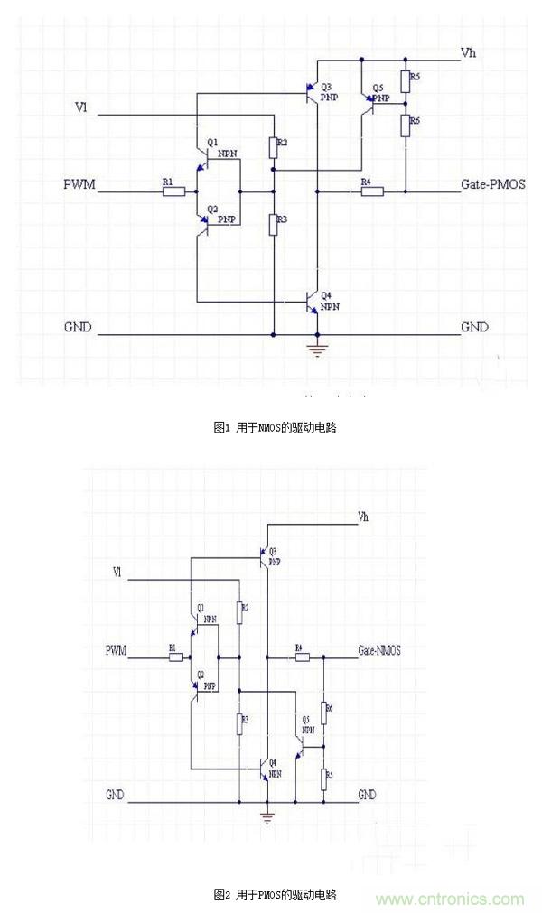 2,用小幅度的PWM信號驅(qū)動高gate電壓需求的MOS管。