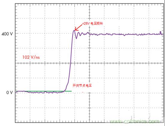 2.如通過優(yōu)化的驅(qū)動器設(shè)計(jì)的GaN開關(guān)波形所證明的,GaN可以非常高速的轉(zhuǎn)換速率工作,并且使交換節(jié)點(diǎn)上的振鈴最小。