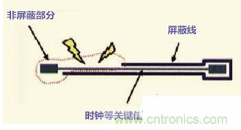 在高速的PCB設(shè)計中,時鐘等關(guān)鍵的高速信號線,走線需要進行屏蔽處理,如果沒有屏蔽或只屏蔽了部分,都會造成EMI的泄漏。建議屏蔽線,每1000mil,打孔接地。