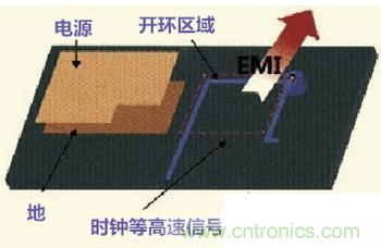 時鐘信號等高速信號網(wǎng)絡,在多層的PCB走線的時候一旦產(chǎn)生了開環(huán)的結(jié)果,將產(chǎn)生線形天線,增加EMI的輻射強度。