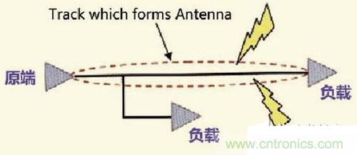 規(guī)則二提到高速信號的閉環(huán)會造成EMI輻射,然而開環(huán)同樣會造成EMI輻射。