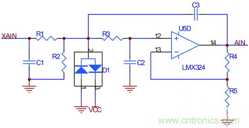 根據(jù)前面部分介紹的輪速傳感器信號特點,設計接口電路如圖3所示。
