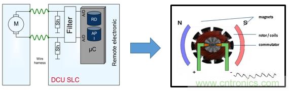 電機有磁極、轉(zhuǎn)子線圈、換向器組成。根據(jù)右手定律轉(zhuǎn)子線圈通電后再磁極磁場的作用下產(chǎn)生運動。運動到磁場邊緣是磁場變?nèi)?,電動勢減小,電流增大。換向器改變轉(zhuǎn)子線圈的電流方向,重新進入磁場電動勢增大,電流減小。轉(zhuǎn)子線圈不斷轉(zhuǎn)動、電動勢和電流不斷變化,從而紋波不斷產(chǎn)生。所以紋波是電機的固有特性,通過計算紋波的個數(shù)就能計算出轉(zhuǎn)子換向的次數(shù),就能計算出窗戶的相對位置,結(jié)合時間就能得出電機的轉(zhuǎn)速。