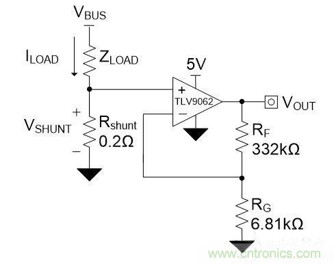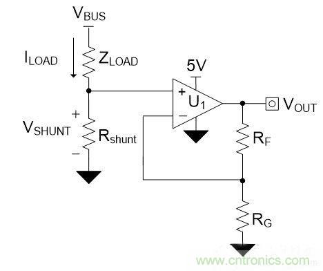 運算放大器(op amp)。圖1是使用運算放大器的典型低側(cè)電流感應(yīng)電路原理圖。