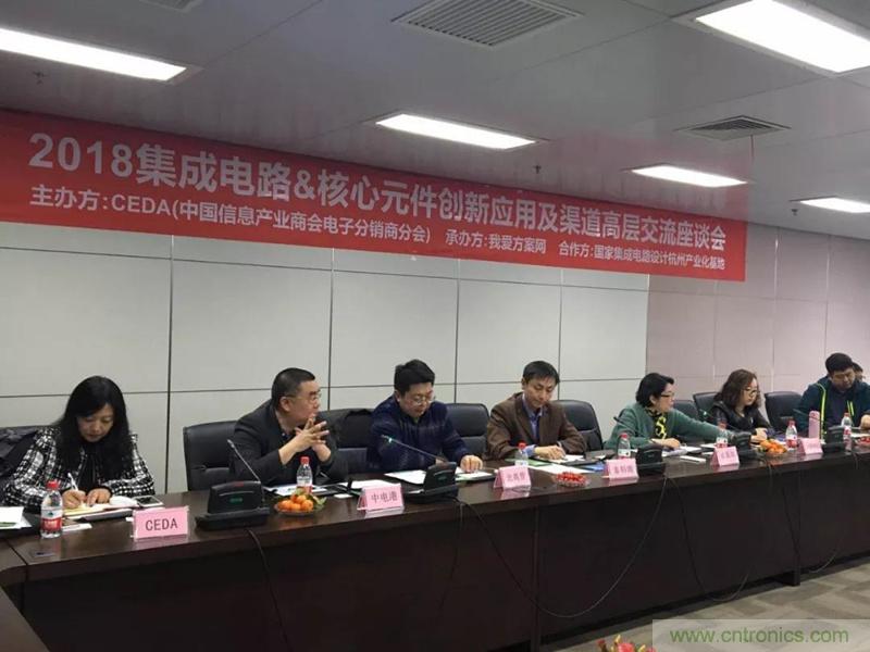 為推動中國集成電路產(chǎn)業(yè)創(chuàng)新,幫助本土的集成電路企業(yè)與授權(quán)分銷渠道對接,CEDA攜手合作伙伴于3月12日下午1點(diǎn)-5點(diǎn)在國家集成電路設(shè)計杭州基地舉辦CEDA春茗暨2018集成電路&核心元件及渠道高層交流座談會,來自CEDA, 杭州IC基地,天鳳證券,中電港,北高智,泰科源,上海豐寶,上海移芯通信,杭州國芯,蘇州納芯微,英特爾,矽力杰,杭州中科微,聯(lián)蕓科技,我愛方案網(wǎng),意恒智能,航林科技等芯片企業(yè)和授權(quán)分銷商機(jī)構(gòu)的多位高層出席了座談會?,F(xiàn)場互動熱烈,原廠領(lǐng)袖分享選擇授權(quán)分銷渠道的標(biāo)準(zhǔn),授權(quán)分銷商領(lǐng)袖分享需求創(chuàng)造和服務(wù)市場的策略,共同探討人工智能,工業(yè)安防監(jiān)控與物聯(lián)網(wǎng)的創(chuàng)新之路!