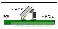 將準備好的電阻器串聯(lián)到晶體諧振器上。